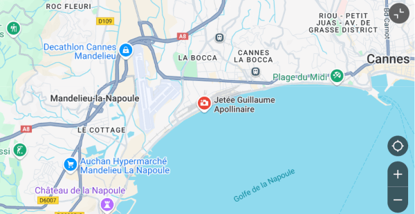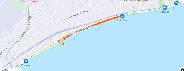 En train: 4,5 km de la gare de Cannes, bus devant la gare avec des départs toutes les 10 mnt environ.
