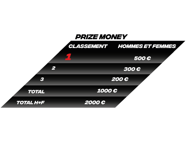 - 2 000 € à se répartir entre les 3 premiers hommes et femmes de la course S.