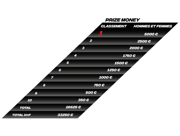 - 33 250 € à partager entre les 10 premiers hommes et femmes de la course M, où les élites seront présents.