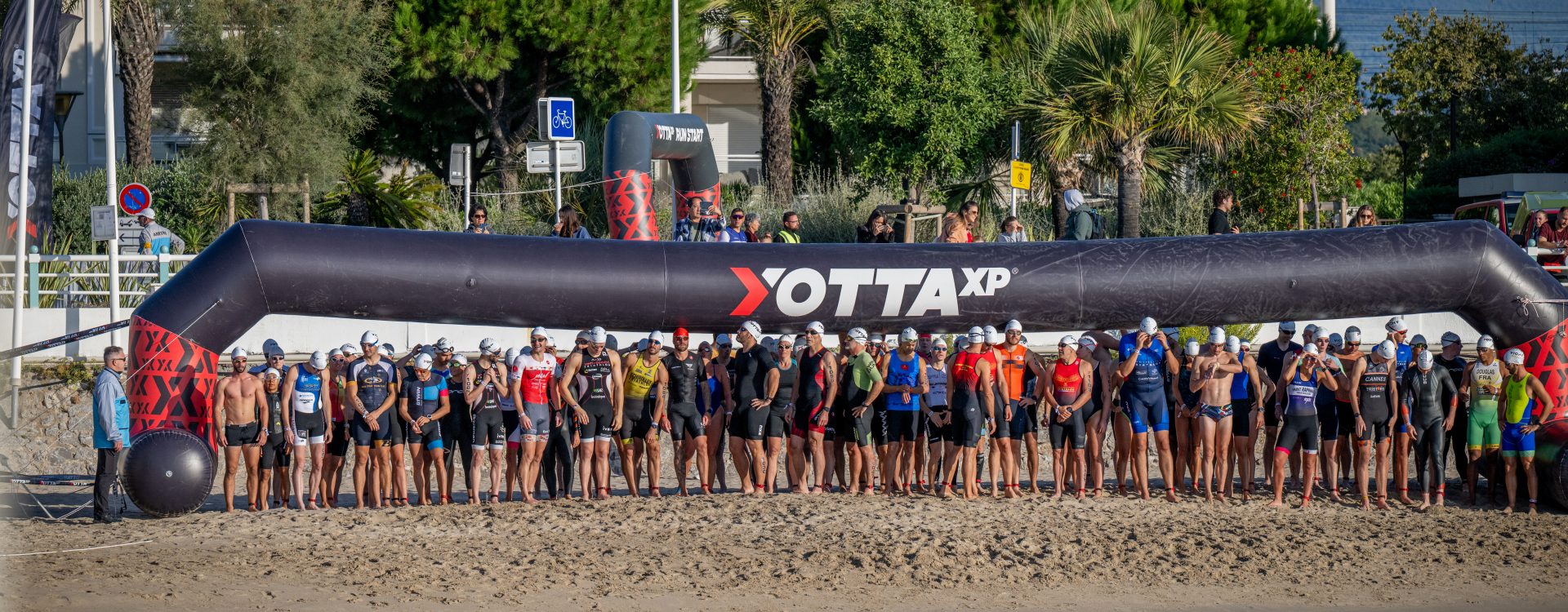 - Au moment du départ de natation à chaque nouveau départ toutes les heures pour le format YOTTA XP L Hommes, toutes les 65 minutes pour le format YOTTA XP L Femmes, toutes les 42 minutes pour les formats YOTTA XP M Femmes , 40’ pour les YOTTA XP M Hommes et 40’ pour YOTTA XP M Relais, toutes les 25min pour les formats YOTTA XP S ; l’athlète doit OBLIGATOIREMENT passer sur le tapis de chronométrage situé avant l’entrée dans l’eau sous l’arche de Départ Natation et se rendre ensuite au départ de natation qui se fera dans l’eau sous les arches gonflables, avec sa puce accrochée à la cheville gauche. Si cette procédure n’est pas respectée, l’athlète risque que son temps ne soit pas pris en compte et donc sa disqualification.