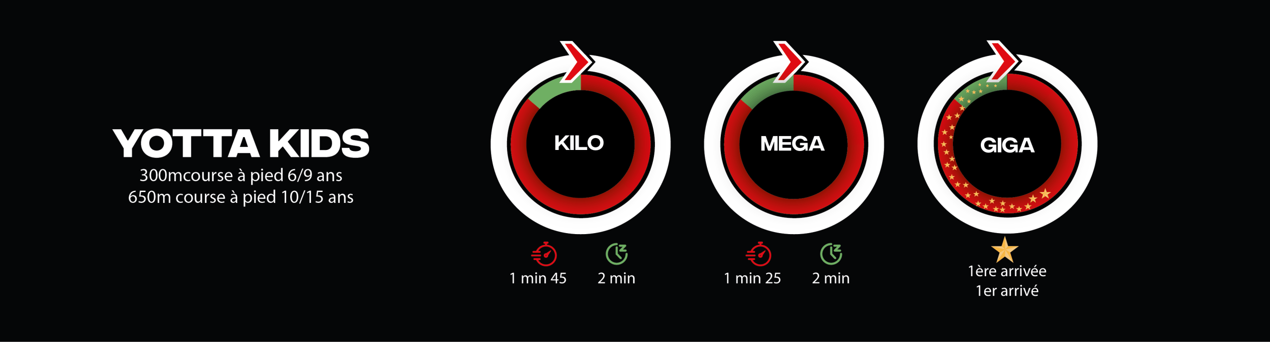 Nouveauté au sein de la YOTTA, les formats YOTTA KIDS permettent aux plus jeunes de découvrir les sensations uniques de la course, grâce à un format spécialement adapté à leur âge. Pas de natation pour les enfants : place uniquement à une boucle de course à pied à répéter plusieurs fois, avec une barrière horaire dégressive pour ajouter un défi ludique.